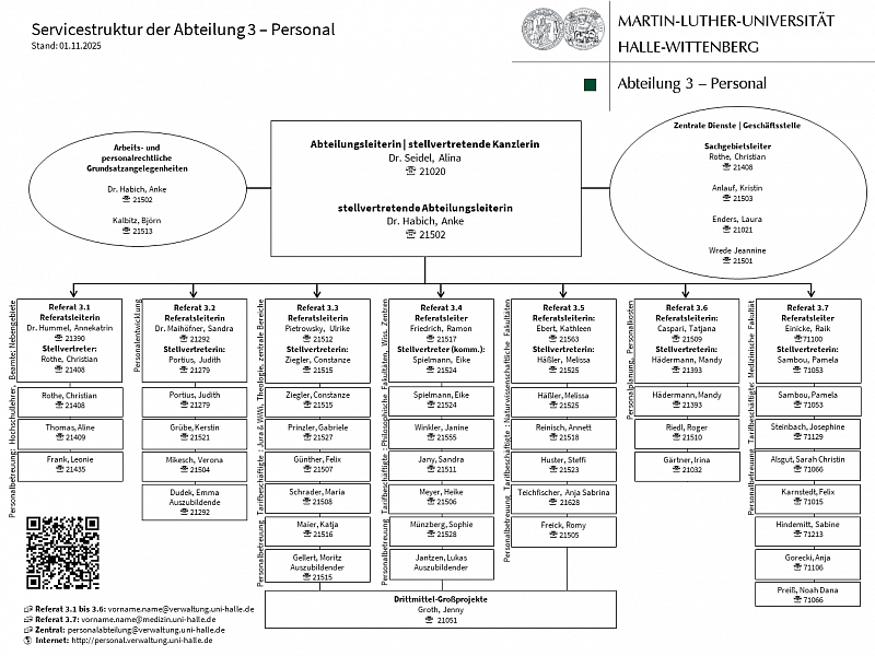 - Das Telefonverzeichnis (mit Raumangabe) der Abteilung 3-Personal kann hier heruntergeladen werden.